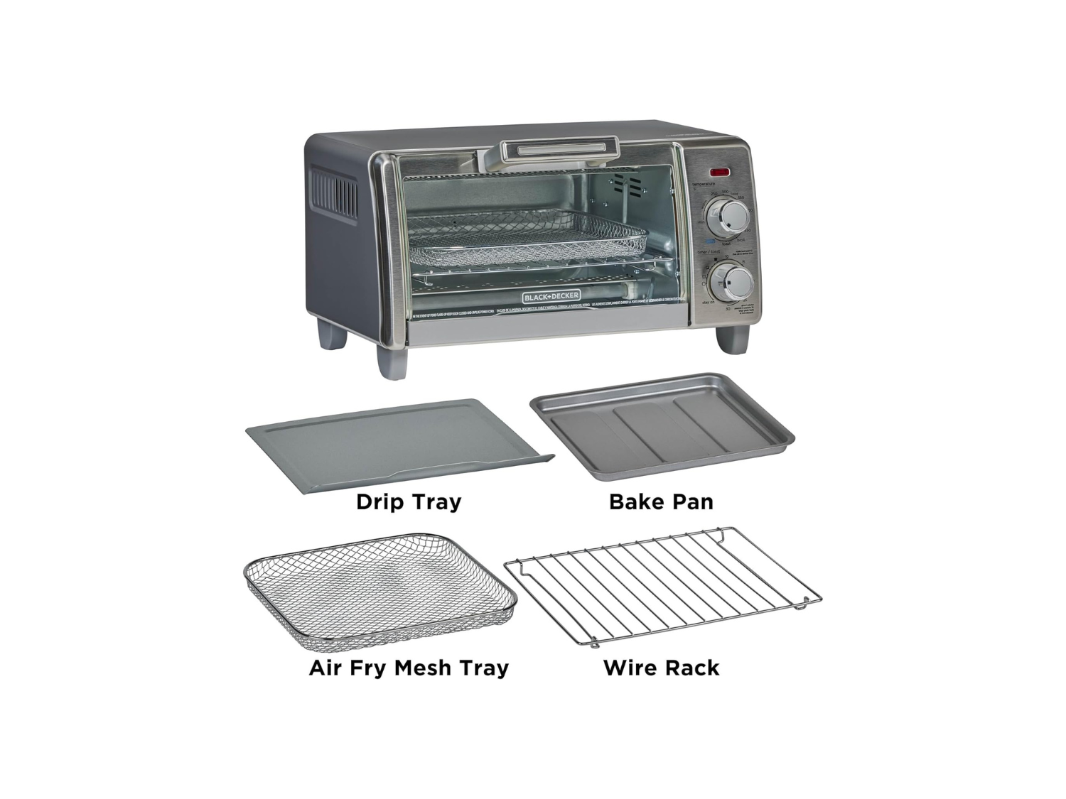 BLACK+DECKER Crisp ‘N Bake Air Fry 4-Slice Toaster Oven TO1787SS – Compact Countertop Air Fryer with 5 Cooking Functions